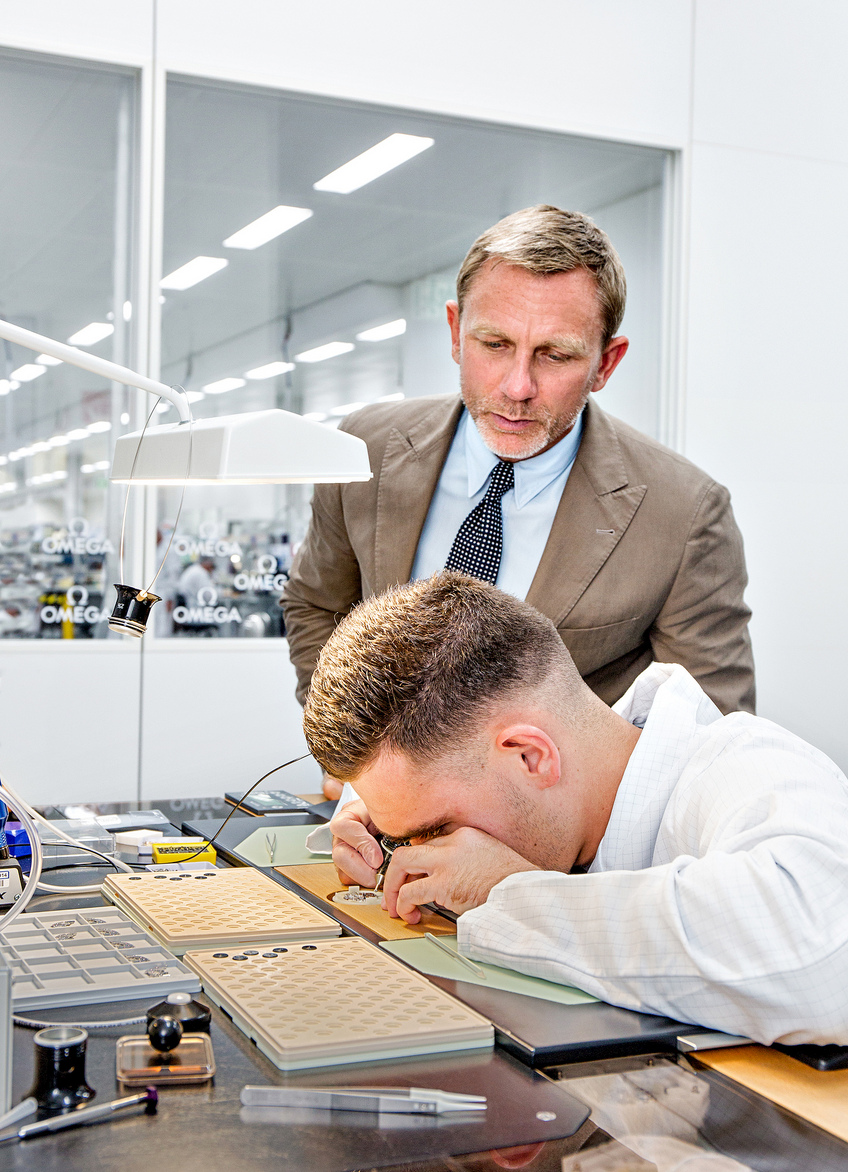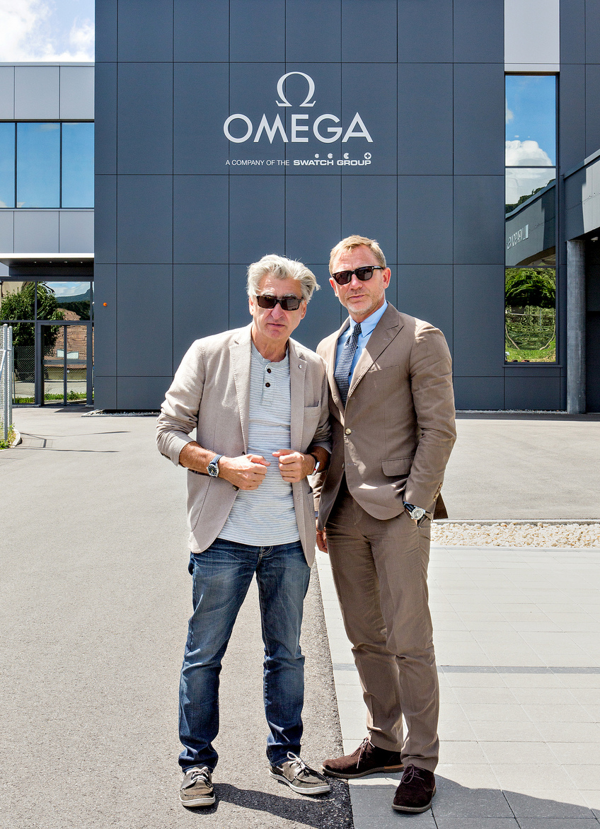 La visite de Daniel Craig a Villeret fut un grand moment pour OMEGA. Accompagné de Nick Hayek, CEO de Swatch Group CEO, et Stephen Urquhart, Président d’OMEGA, Craig a pu découvrir les secrets de fabrication d’une montre OMEGA telle que celle qu’il porte dans SPECTRE. Lui-même fervent collectionneur, il s’est montré particulièrement fasciné par l’ingénierie et l’expertise mises en oeuvre.