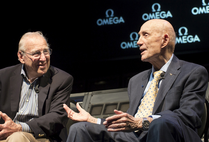 Captain Lovell recounted the frightening tale of his Apollo 13 experience sharing, “it was necessary to maneuver without the use of our equipment, we had to burn the engine for 14 seconds in order to course correct so we used the watch to time the burn of the engine and return safely.”