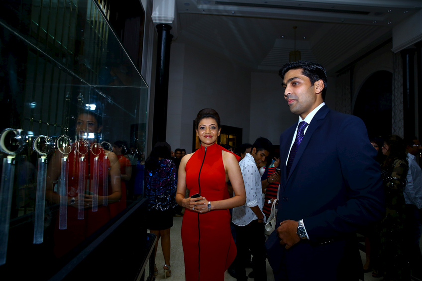 Leading bollywood actor Kajal Aggarwal observing the OMEGA museum collection at the OMEGA Event in Chennai.