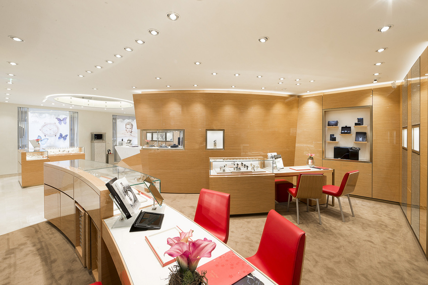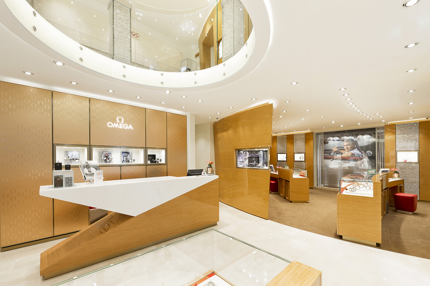 The lower level is home to a separate sales area and is distinguished by its vaulted ceiling. On the ground floor, guests will find three sales areas where members of the boutique staff can present items from the timepiece, Fine Jewellery and Fine Leather collections. The first floor provides an area for special displays or showcases featuring products or objects from OMEGA’s illustrious past. A comfortable VIP lounge for customers and an in-house watchmaker are also located on the first floor.